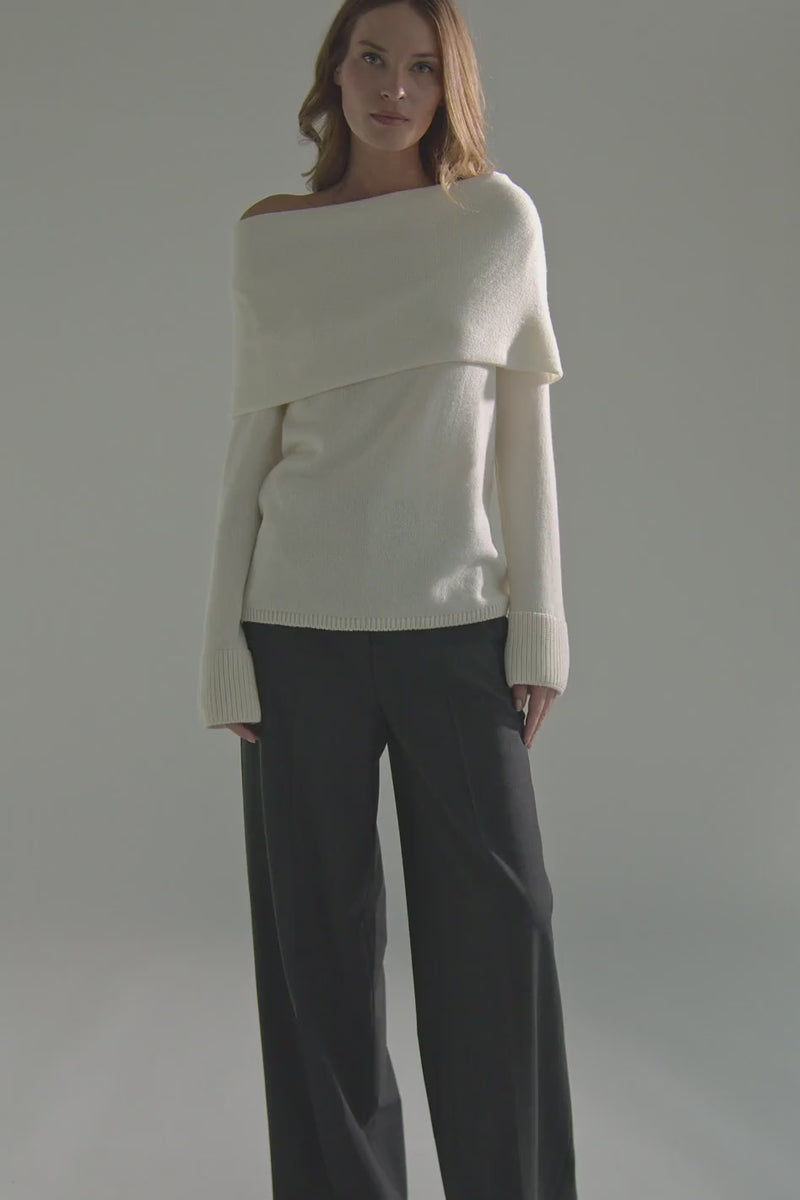 Crafted from pure cashmere, this Gran Sasso knit features an elegant ring collar that drapes softly off the shoulder for a refined, feminine silhouette. The clean lines are balanced with ribbed cuffs for subtle structure, offering lightweight warmth with effortless appeal. A timeless statement piece designed to elevate winter dressing.