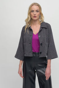 Joseph Ribkoff Jacquard Sweater Plaid Boxy Jacket Jr243241