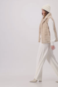 This warm and fashionable gilet made of faux fur convinces with its elegant stylish stripes. The fleecy feel of the gilet makes for a wonderfully pleasant wearing experience.